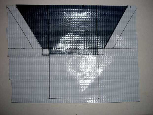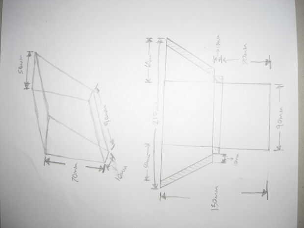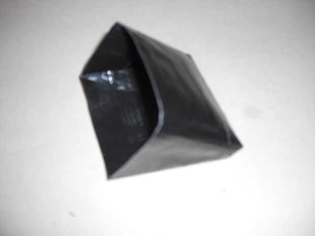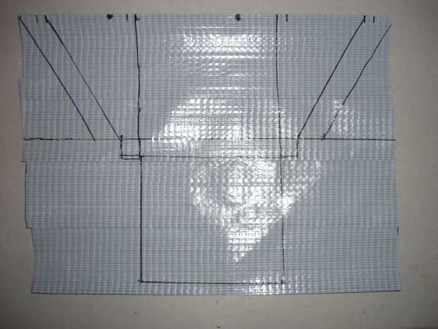 En primer lugar usted necesita un "patern" o "red". Este es el diagrama que usas para decirle cómo cortar y doblar la pieza de moneda. puede tome un pedazo de papel, piense en las dimensiones y escribir en papel luego "aplanar" la imagen 3D por lo que cada lado es su propio panel y enlazarlos en un pedazo de cinta adhesiva para reducir los joins. El patern usé es de abajo pero era demasiado grande, así después me quedé en que corte la parte superior a su tamaño. Esto no tiene ningún efecto detremental a la integraty de la cartera.