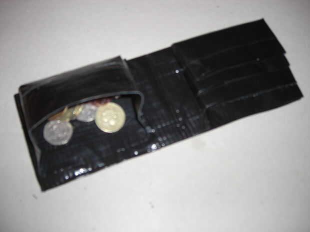 Tome algunos cinta la longitud de su compartimiento de la moneda y la doble cara por lo que no es pegajoso, pliegan las fichas pertinentes aparte del borde superior que se engancha sobre el borde superior de la sección de nota en el centro por lo que todavía puede abrirlo y una segunda pieza se aplica en el interior por levantar la tapa y pegar otra pieza de este lado.