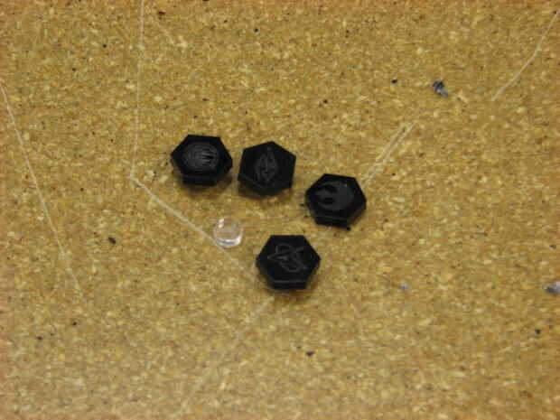 2) cortan los círculos cortados para encajar en los orificios del acrílico principal.