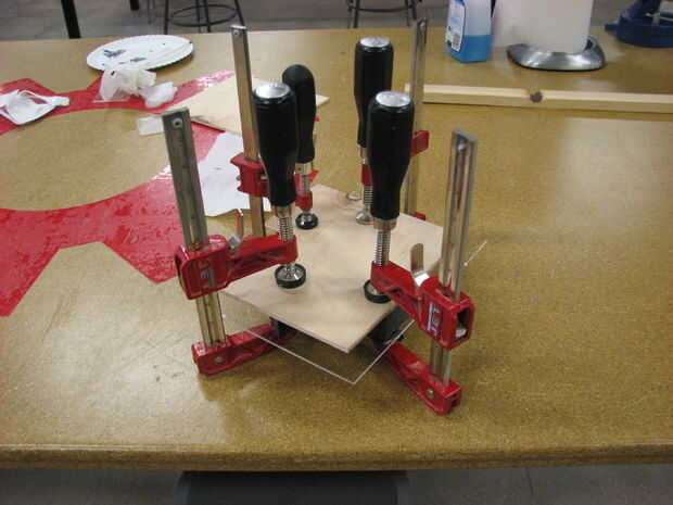 2) prueba de: (utilicé cartulina). Prueba en la misma escala (ej. Cuatro capas de cartulina para acrílico de 1/2") para asegurarse de que la pieza se apoya como debería