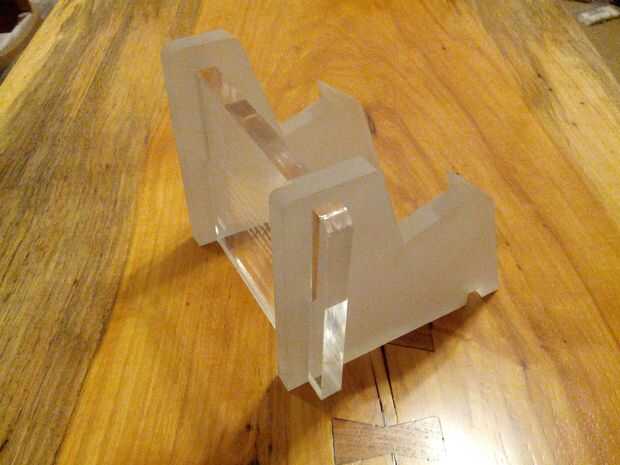 1) diseño de un soporte de acrílico grueso (yo usé 1/2") que las ranuras juntas y sostiene la piedra uniformemente