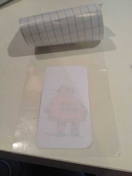 cubre la imagen en ambos lados con plástico transparente adhesivo y corte el exceso. Esto también puede hacerse con cinta transparente