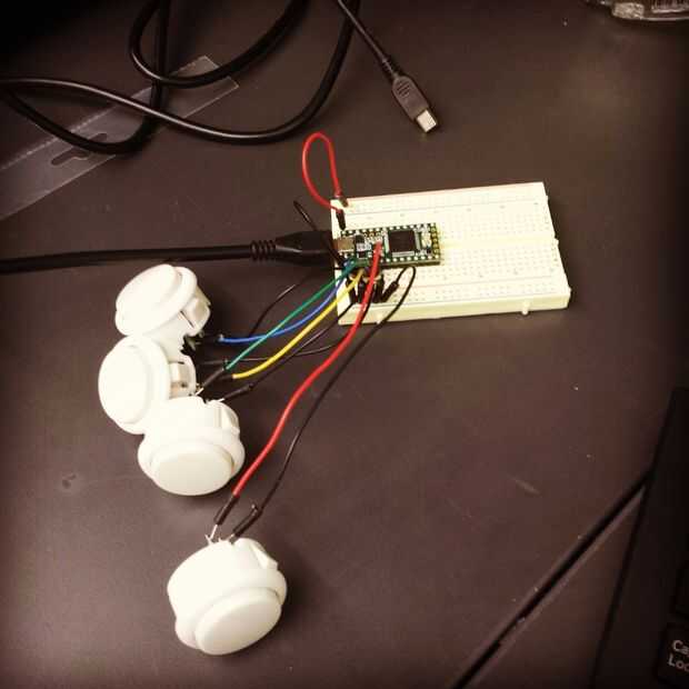 He soldado mis botones sanwa y había probado mi teensy en un protoboard primero. Los botones Sanwa son bastante fáciles de soldar. Usted tiene un pin de tierra y uno de los pines de la entrada. No importa cuál es la tierra y cuál es la entrada. Entonces yo soldar pines en mi teensy por lo que puede ser utilizado en un protoboard. Usted puede también comprar teensy que ya se han soldado pines para 2 o 3 dólares más.