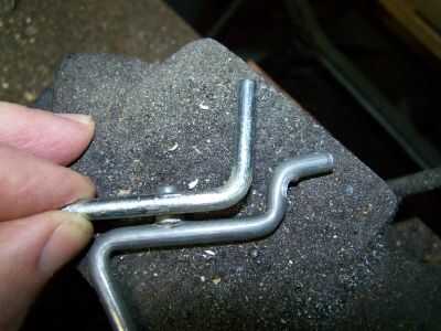 Puede ser un tiempo cuando usted necesita un gancho para su pegboard, pero no puedes encontrar o adaptar la suspensión del derecho comercial.  Las suspensiones de mi comerciales son un poco más gruesas que 3/16".  Estoy utilizando varilla de 3/16" aquí.  Hacer un cálculo aproximado de cuánto barra se utiliza en las curvas en el gancho comercial y hacer una curva para replicar la primera curva como se ve aquí.