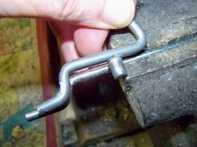 Mi suspensiones comerciales utilizan un perno de 1/4" para coger el agujero perforado por debajo de la que se acepta la sección doblada.  La mordaza me permitirá presionar la varilla de 1/4" contra las mordazas mientras se suelda.  Esto le dará una colocación precisa, siempre y cuando me sale esta configuración derecha.