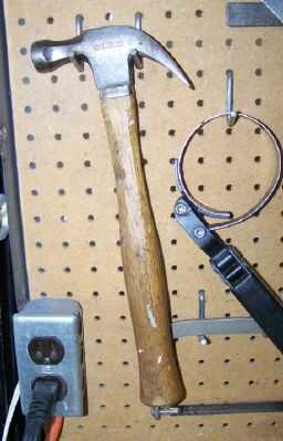 Una de las fotos de abajo muestra cómo torcida mi martillo colgó antes.  El otro muestra los ganchos disponibles en el mercado que había estado utilizando.