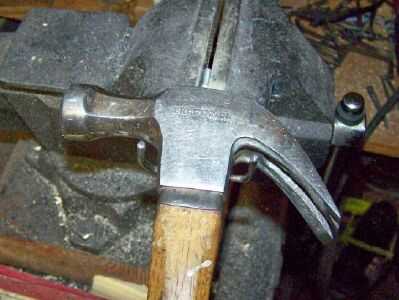 En la segunda foto debajo de usted puede ver cómo la pieza en forma de "U" se alinea con los contornos del martillo. Usé este proceso para determinar cuánto ángulo en la pieza que estas en la instalación de soldadura para el soporte comercial.