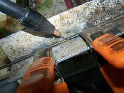 En la tercera foto debajo de usted puede ver cómo soldar dos varillas end-to-end. Tengo un pedazo de ángulo de aluminio de 1 1/2 "x 1 1/2". Dos de los talones de alambre del paso 2 se utilizan en esta demostración. Aunque estoy usando un cable de alimentación de soldador, que es muy fácil comenzar; no es difícil de hacer este paso con un soldador del palillo. Ver mi Instructable sobre a partir de un arco exactamente donde usted quiere comenzar a usar un soldador del palillo.