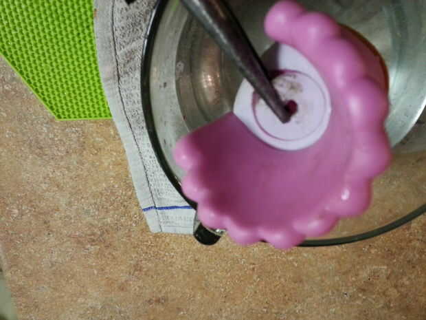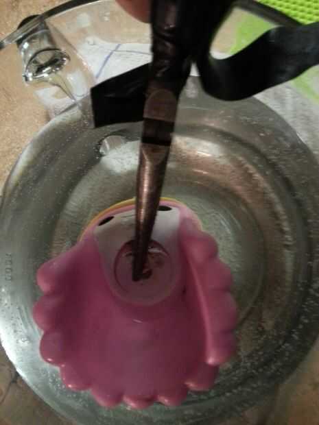 Coloque su pequeña figura en el agua y deje que fijó para alrededor de 5 minutos. Esto relaja el pegamento que mantiene a la cabeza. La base principal debe pelar hacia fuera con un poco de fuerza. Cabeza de Cady salió fácilmente. Cabeza de Bubblegum mantiene la base porque su cuerpo de reventadas y entonces tuve que conseguir la base de su cabeza. Fue un reto.