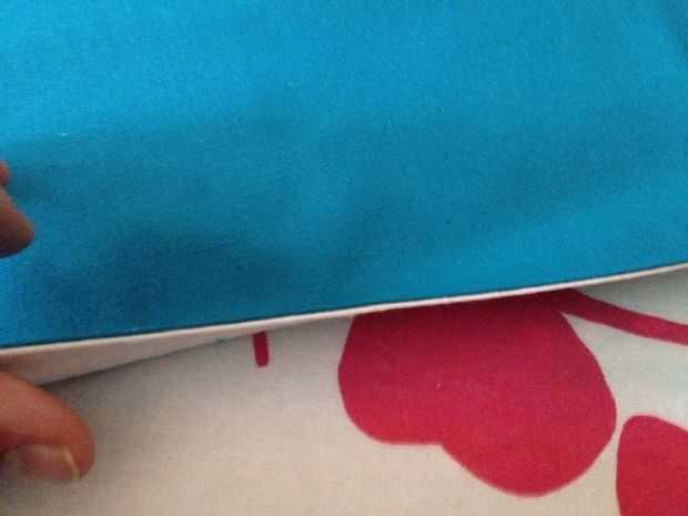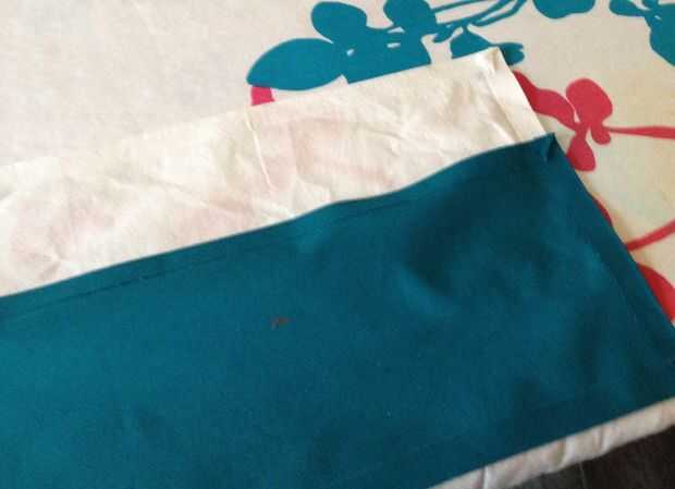 Si usa dos pedazos más finos de tela por cada lado, hacer esto con cada pieza, luego cualquier web de maravilla o Hilvanar las dos piezas.