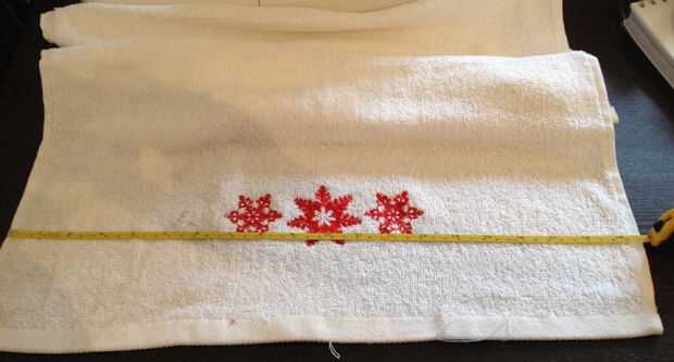 Repita para el paño en otro lado de la toalla y poner las tiras de tela a un lado.