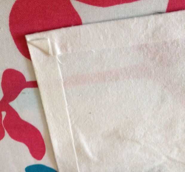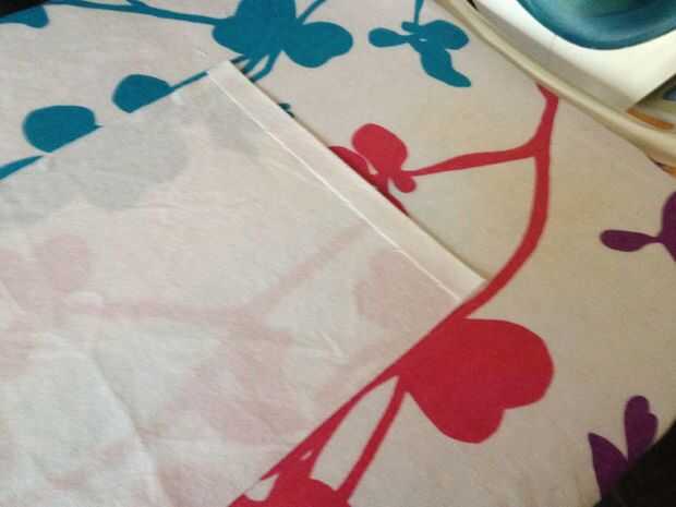 Se trata de donde sacó de la web de maravilla para ayudar a mantener los bordes en su lugar. Doblar cada borde inferior 2,5 cm y prensa. Donde tienes sacando las esquinas, doblarlas otra vez y web de maravilla para mantener en su lugar fuera de la vista.