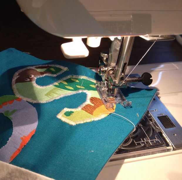 Cuando feliz con colocación de letras luego coser en su lugar con tu puntada de appliqué de elección. Para este proyecto he elegido una puntada en zigzag para hacer una puntada, pero con una puntada de appliqué máquina funcionaría igual de bien. Si no te preocupa se deshilachen los bordes entonces una simple puntada corriente puede incluso ser suficiente.