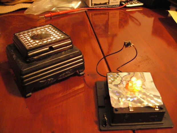 4] prueba del interruptor mediante la colocación de una pulgada cuadrada de 1 1/2 pieza de papel de aluminio sobre los extremos de los dos cables al mismo tiempo. Si el componente E ilumina o emite un pitido, etc., que ha completado su circuito. Este será el método por el cual se completa la mayoría de tus circuitos. Imágenes de la nota.