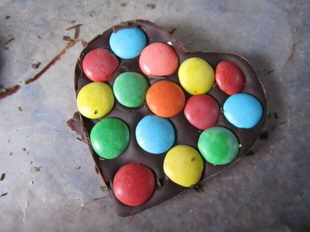 de San Valentín esto hice un corazón de chocolate en forma de caramelos para compartir con mi familia y amigos. Era una forma sencilla y deliciosa para celebrar el día de fiesta!Todo lo que necesitas es:Un molde de caramelo: sugiero un cubito de hiel