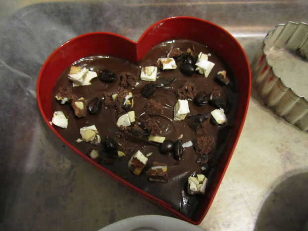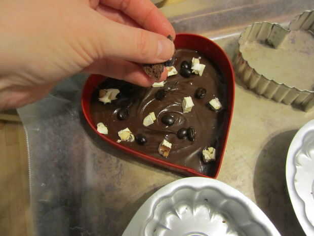 Repita el proceso de rellenar cada molde con chocolate derretido y agregar los ingredientes hasta que se llenan los moldes y chocolate utilizado para arriba.