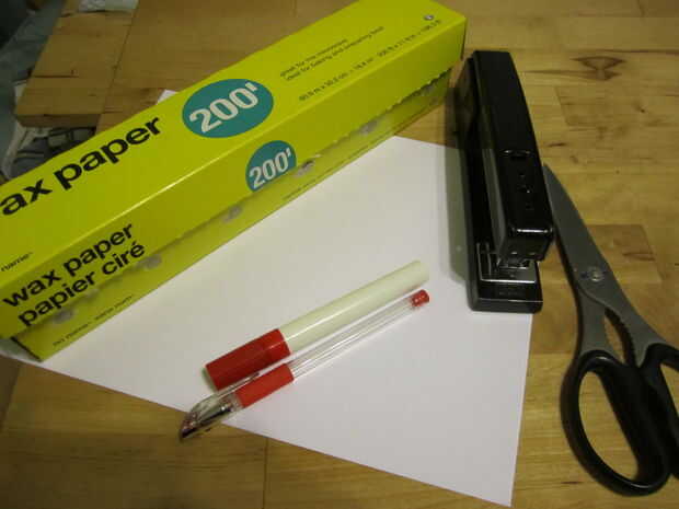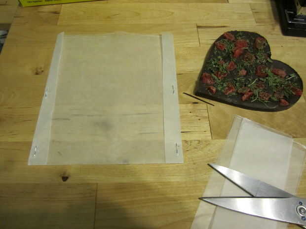 En primer lugar, saque un pedazo de papel encerado y cortarlo por lo que puede envolver en la barra de chocolate como ensobrado. Corte la pieza de la lista.