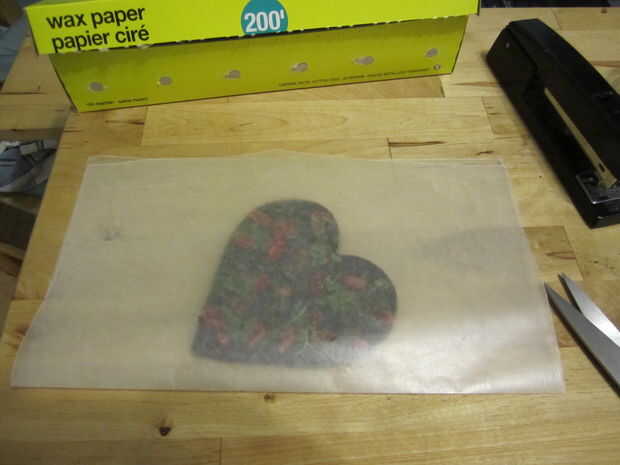 Doble el pedazo de papel encerado por la mitad sobre la barra de chocolate.