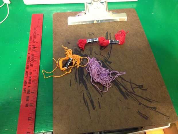 Tres colores del bordado de seda / cadena tablero de Clip o cinta para grabar a una superficie tijeras regla (no necesario)