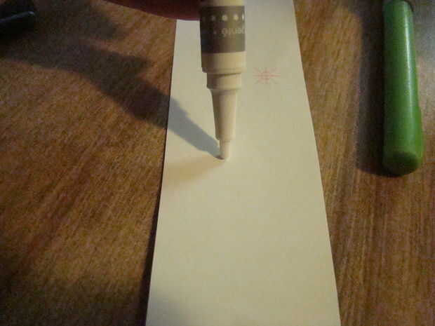 La lea en la parte posterior del paquete Art Deco vidrio marcador.   Estrechó el marcador y luego pulsar la punta blanca en una hoja de papel
