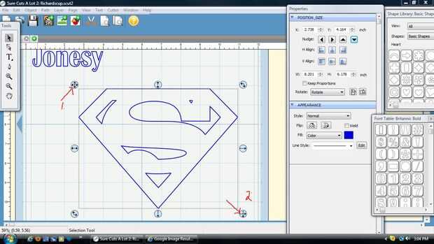 y apareció en mi en estera de la pantalla.  Usé la esquina superior izquierda y las esquinas inferiores de la derecha para mover el símbolo y el tamaño al tamaño que quería y el lugar que quería en la estera.