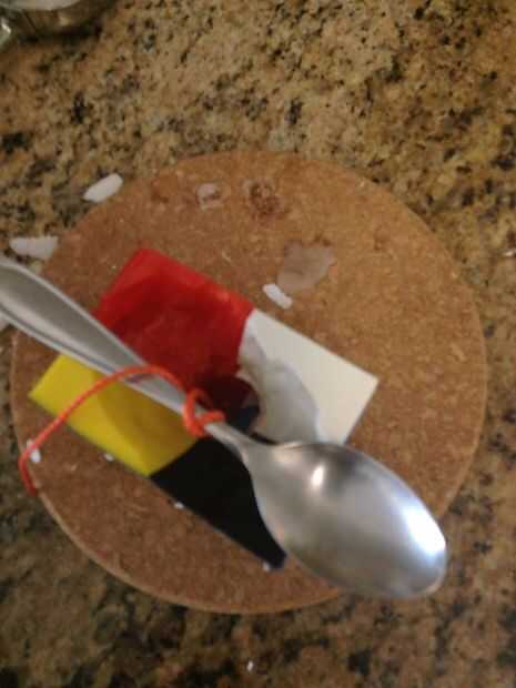 Presione con una cuchara la mecha, así que usted puede verter la cera cómodamente como se muestra en el siguiente paso /