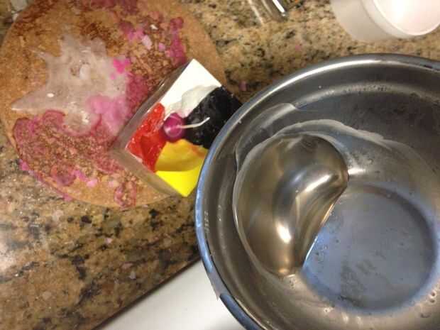 Si está preparando una vela multicolor tienes añadir cera y enfriar después de cada color.