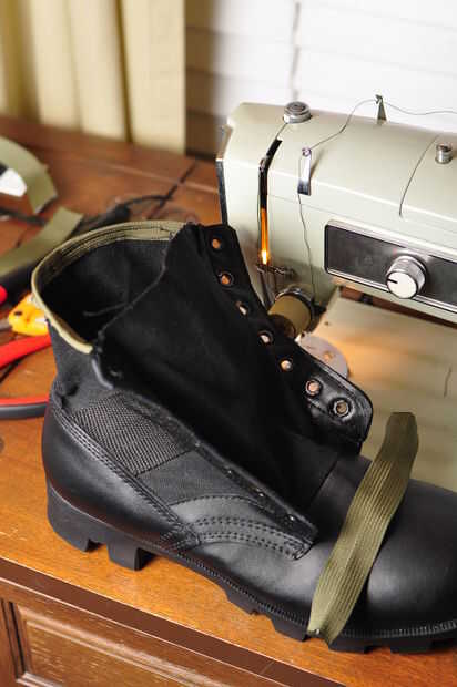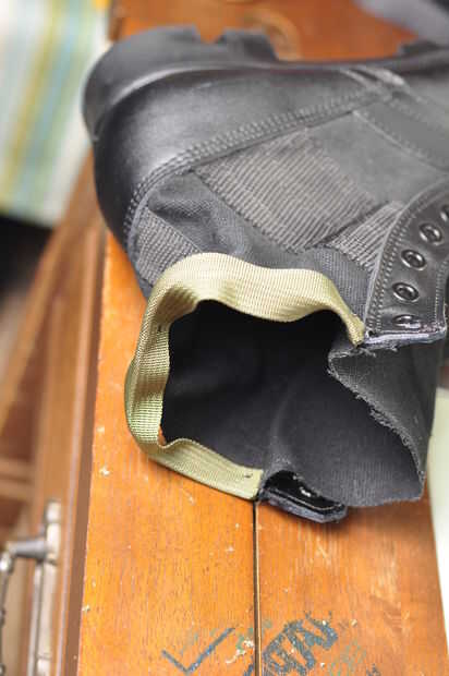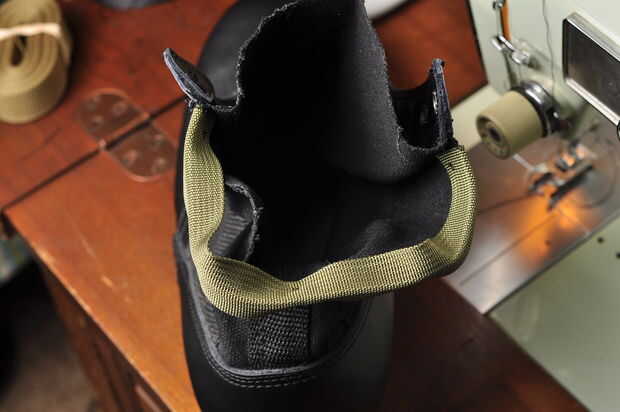 El proceso es el mismo para la parte posterior y la lengua. Su arranque para moverse alrededor de la máquina mientras que cosa es la parte más difícil. Sólo podía coser en una sola dirección ya que mi brazo de máquinas de coser no es lo suficientemente alto para acomodar la bota.
