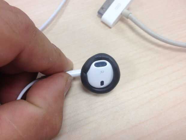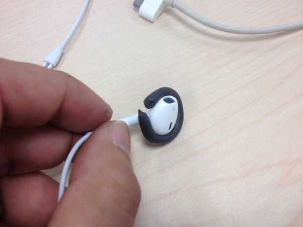 Rollo Sugru alrededor del Timbó. Necesita evitar cualquiera de los orificios de los EarPods. Encontré que es mejor envolver primero en un ángulo (ver fotos) que evita todos los puertos en primer lugar, por lo que se puede ajustar mientras presiona hacia abajo sobre el sugru más adelante.