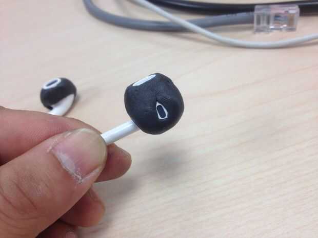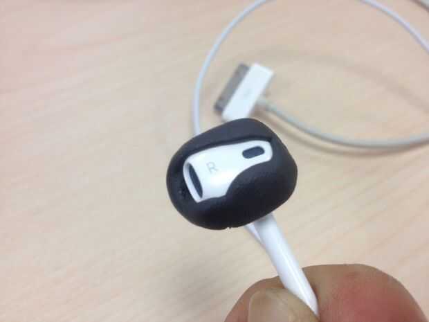 Cuidadosamente ahora, presione hacia abajo la Sugru, capa los EarPods. Desea una capa que podemos modificar más adelante, pero no demasiado espesa. Puedes ver que tengo dos formas diferentes de la capa.