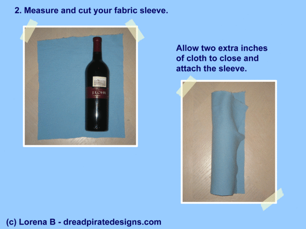 El ancho de la pieza cortada debe envolver la botella con dos pulgadas extras añadidos a la circunferencia de la botella.