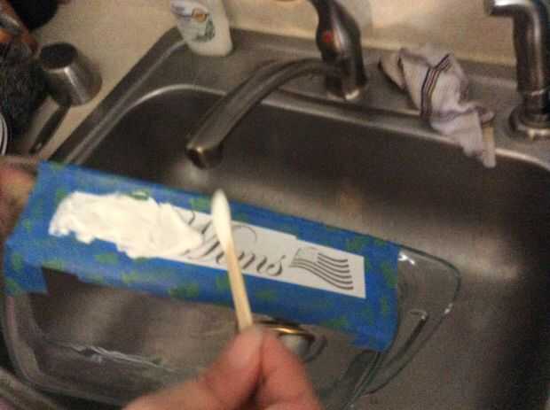 Poner en los guantes y tome pan al fregadero y al inicio grabado dejarlo reposar un minuto y luego salen