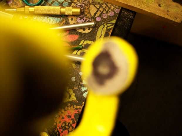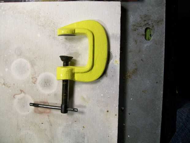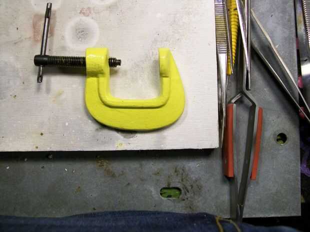 espalda al ayudante del remache que básicamente es sólo una pinza quitar "G abrazadera para lector desde el Reino Unido" la parte como en el cuadro archivo de ambos extremos para ser plana se encuentra una pequeña muesca en el medio del archivo de perno tornillo hasta que es sólo una muy pequeña pero no archivo en conjunto ahora cerrar la abrazadera hasta que ambos extremos se reúne y marca donde aterriza ahora con una herramienta dremel y un redonda de diamante cabeza hace una muesca media esfera en ambos extremos en el centro y listo.