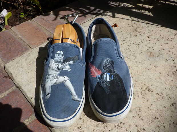 personalización de zapatos es una divertida actividad para adultos y niños que les encanta pintar y expresarse en formas artísticas. Los zapatos pueden tener cualquier patrón los deseos del diseñador. La primera cosa a hacer, antes de siquiera comprar los zapatos, es tener una idea básica de lo que vas a dibujar. Tomar cuidadosa consideración al comprar sus zapatos, el factor más importante es la tela y el color. No compre sin zapatos, zapatillas, zapatos de cuero o zapatos con mucha textura. Si quieres un patrón intrincado, sugiero alta converse con un material de lienzo porque estos zapatos ofrecerá un gran espacio plano en ambos lados en el zapato. Si usted está interesado en diseños más pequeños, comprar pisos de lona o algo como Keds o furgonetas. Si usted compra blanco zapatos de color puede utilizar marcadores de la tela y sharpies para colorear su arte, dándole un aspecto liso natural. Zapatos de color más oscuro se van a necesitar pintura acrílica para que las imágenes pueden ser visibles.