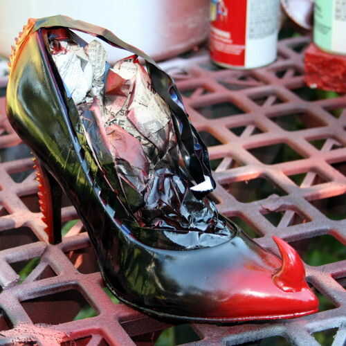Nota: Cubriendo la porción pintada roja bajo el zapato le dan el aspecto de Louboutin y dar un especial detalle extra a la zapatilla.