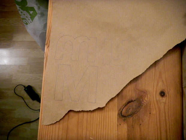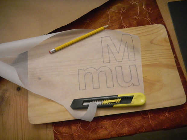 Dé vuelta el papel y trazar las letras para transferir en el papel de la parcela (Foto 2). Las letras transferidas deben ser imágenes de espejo para que cuando quieras cortar hacia el lado limpio del papel tendrá las letras en la forma correcta de ronda.