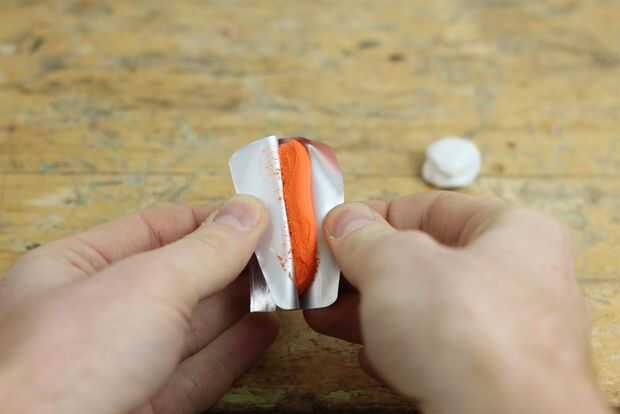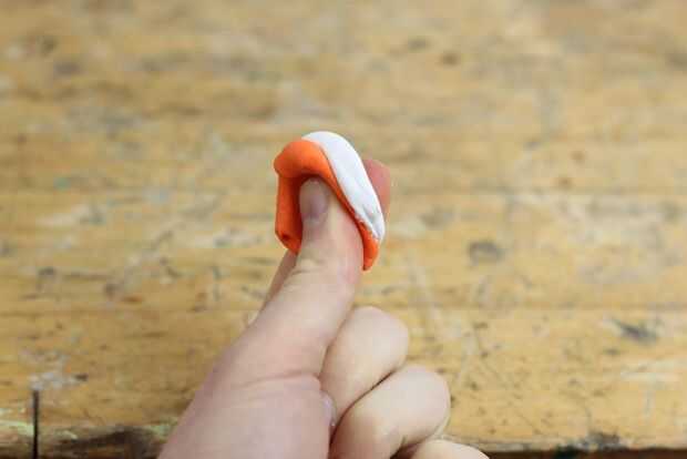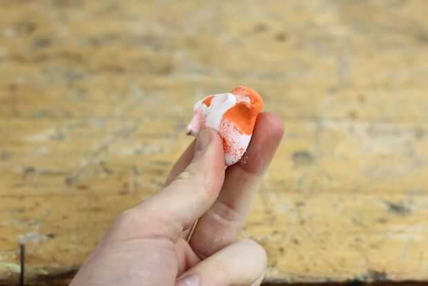 Para elegir un color, utilice a la guía de color en el manual de 7 pasos incluido con su sugru. Este color durazno fue una mezcla de naranja 50% y 50% blanco.