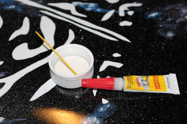 La primera y más simple era apenas un pequeño pedazo de la calcomanía de Yoda que comenzó a pelar encima mientras se secaba la capa transparente. Para solucionarlo, es bastante simple utilizar un palillo de dientes para aplicar pegamento loco en la parte inferior y pegar hacia abajo.