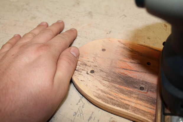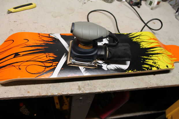 A partir de papel de lija áspero y mover a grano progresivamente más fino, quitar el diseño resultó para ser asombrosamente fácil. El resultado fue agradable y limpio y listo para un nuevo diseño.