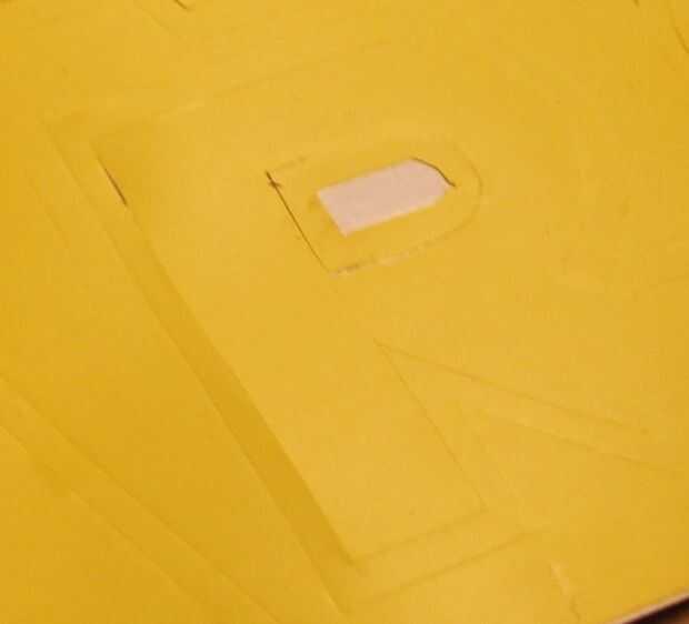 El primer paso es asegurar la imagen de la plantilla para el vinilo con cinta scotch. También corté un par de agujeros en la imagen que nuevo terminaría en blanco y grabado a través de aquellos. Así, fue asegurado en el vinyl en múltiples ubicaciones, no sólo en las esquinas y lados.