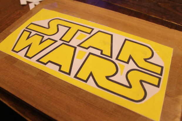Talla de la decoración es bastante simple. Empecé con google búsqueda de imágenes, buscando los diseños exactos que necesitaría. Ante todo, quería que el logo de Star Wars clásico y emblemático. Bastante fácil. Un poco más complicado fue encontrar la imagen correcta de Yoda. Yo finalmente rastreado algo cerca, y un poco de trabajo en Paint.net dio lugar a la imagen final que quería utilizar. Todo lo imprimí en un tamaño me gustó, agarró un trozo de madera sobrante y mis herramientas y fue a trabajar!