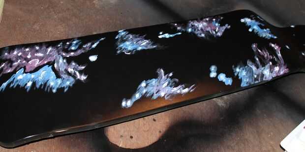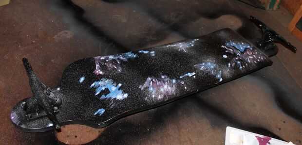 Al igual que en el ultimo paso pero en una escala más grande. Pintar sus nebulosas nubladas swirly y añadir estrellas con halos. Había añadido los camiones y pintados a su alrededor, luego encendió estrellas blancas en todo, incluso los camiones. Resultó bastante bueno!