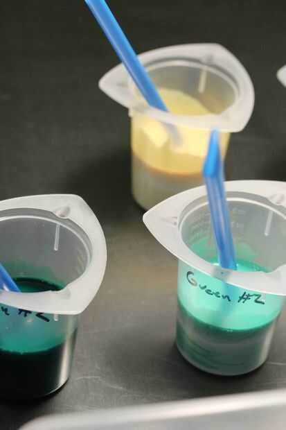 Al agregar una sombra a una resina (p. ej. añadiendo PR57-W y PR57-C), usted quiere asegurarse de que la formulación se mezcla por lo menos aproximadamente antes de decidir agregar más material. Si el material no se mezcla bien puede parecer insuficiente del material fue agregado, pero cuando toda la mezcla es más bien mezclados pueden realmente proporciona el color deseado. Es muy fácil de agregar el material a una mezcla, pero usted no puede tomar hacia fuera una vez allí.