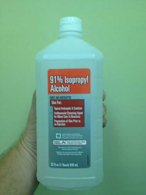 1. conseguir una botella de alcohol isopropílico al 91% y limpie la parte posterior de la cuña para remover suciedad, aceite y grasa.
