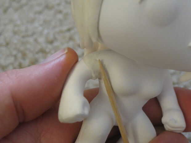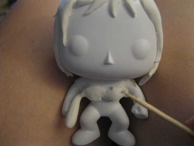 * Nota: Tener mucho cuidado de trabajar alrededor de pelo de tu personaje! (Una vez más, yo derribado varias puntas de pelo de mi figura y tuve que pegar en o reforman porque perdí la pequeña quebrada consejos en mi alfombra!) Que desea ser seca para que puede mantener su carácter de cuerpo o cabeza delicada para trabaja en la ropa.
