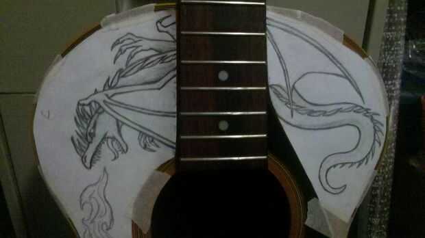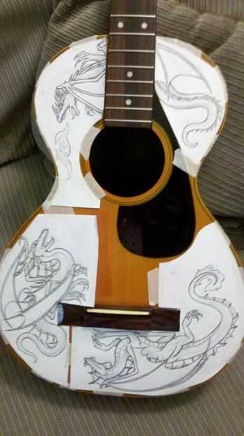 El diseño fue inspirado en un arte creado por Blizzard Entertainment! Un chico me quería pintar algo divertido en su guitarra cheapy!Lo que usted necesita:-A guitarra!-Lija-Pintores cinta/papel-Pinturas acrílicos-Spray de imprimación-Aerosol esmalte