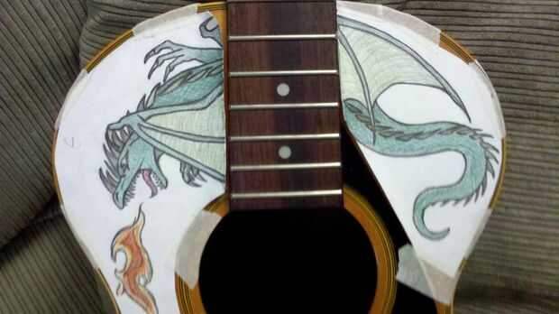 El diseño fue inspirado en un arte creado por Blizzard Entertainment! Un chico me quería pintar algo divertido en su guitarra cheapy!Lo que usted necesita:-A guitarra!-Lija-Pintores cinta/papel-Pinturas acrílicos-Spray de imprimación-Aerosol esmalte