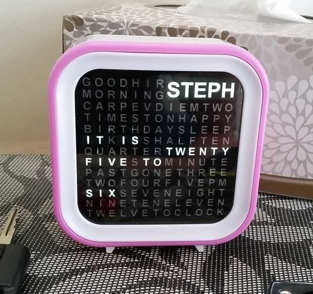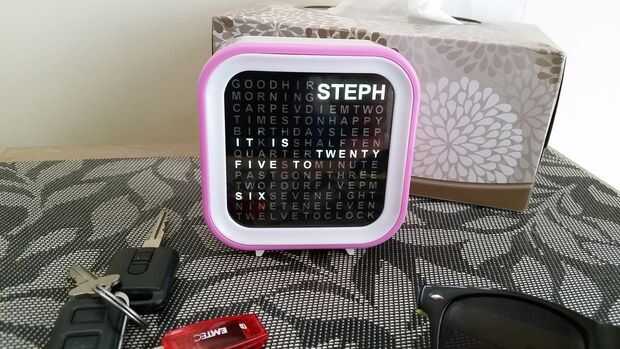 El reloj muestra los destinatarios nombre y ha personalizado los mensajes que aparecen en diferentes momentos, es decir. Feliz cumpleaños, Buenos días o lo que elijas.