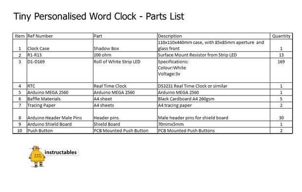 El componente más importante de este proyecto es un buen recinto. Mayoría de tiendas de Departamento tendrá una variedad de relojes de bajo coste que sería conveniente. Busca funky buscando relojes que tienen un frente de vidrio con una profundidad de al menos 4 cm. ideal que busca algo que es un recinto de estilo "caja de la sombra" que tiene una abertura frontal de al menos 11 cm x 11 cm. El recinto también necesita poder desmontarse fácilmente y el reloj interno. Los componentes electrónicos están incluidos en la lista de arriba. He intentado minimizar el número de los componentes así que fue por un Arduino Mega conducir directamente la matriz de LED. Consulte la sección de circuito para más detalles.