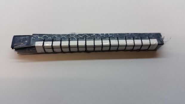 Marque cuidadosamente la distancia entre cada cuadrado en la parte superior del paquete. Cuando marcado correctamente se deben ser 14 marcas con la distancia entre ellos alinear con el panel LED.